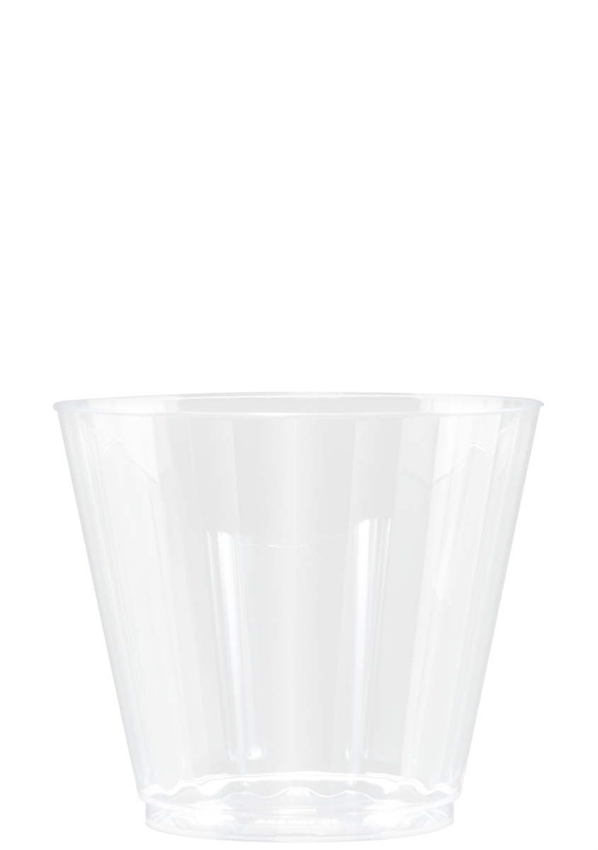 Keep your brand front and center with every sip when drinking from these clear fluted plastic cups! Designed with a 9 oz. capacity, this rocks cup not only makes a beautiful presentation, but it's recyclable too! They are ideal for any venue or event where drinks are served. Customize each one with a brand name, logo, or message using an unlimited number of imprint colors. Multi-color imprints are available on 1 side only. There is no extra charge for 1-sided, 2-sided, or wrap imprint. We offer free PMS matching and metallic and neon ink colors are offered at no extra cost. This product is made and printed in the USA.
