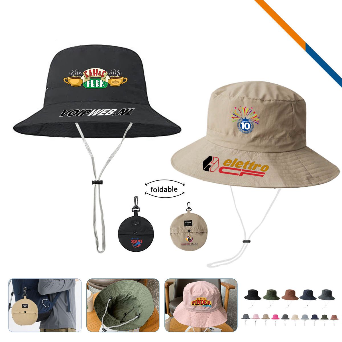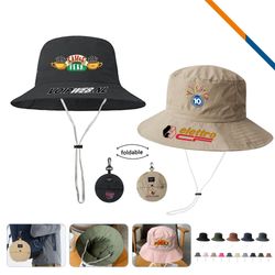 Let PeakBrim Foldable Hiking Bucket Hat With String becomes your reliable companion for every mile of adventure. Made from high-quality polyester, this bucket hat is durable and lightweight. It features UV protection (UPF 50+). A flexible wide brim that shields your face from the sun and rain. It can be folded into a small pouch and easily attach to your backpack and purse. It is also equipped with an adjustable string that ensures a secure and comfortable fit. Perfect for hiking, fishing, and cycling. Style A is normal fabric bucket hat, and style B is waterproof and quick-drying fabric bucket hat. Standard with style A. Premium with style B is available at an additional charge.