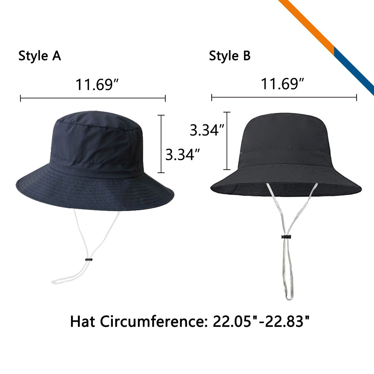 22.05"-22.83" (Hat Circumference), 11.69" W x 3.34" H