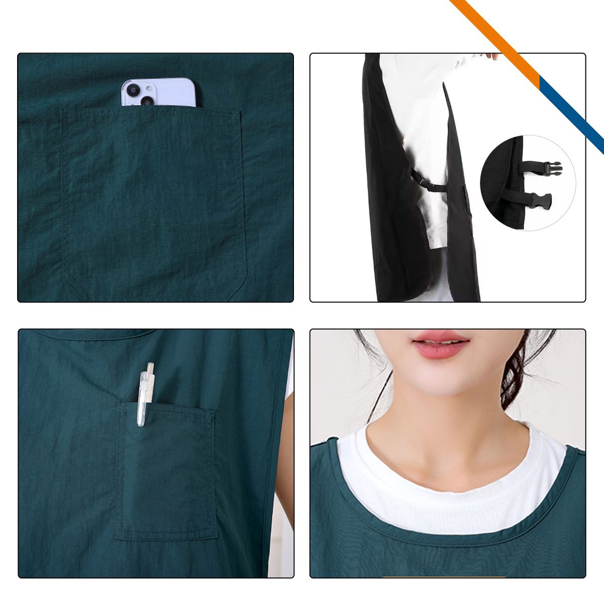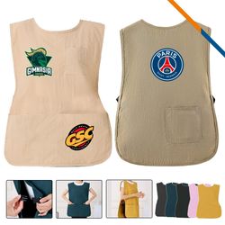 Dress your hardworking employees, event crews and more in WorkTarp Polyester Cobbler Apron for a polished look. Crafted from waterproof polyester, this cobbler apron comes with a crew neck design and slip-on construction featuring dual arm openings. Equipped with two adjustable buckles, it delivers a fully customizable fit—effortlessly adapting to different body types for all-day comfort. A chest pocket, large front apron pocket, and a rear pocket are designed for keeping small items. Add your school, sports team, organizational or company logo or message to customize. Ideal for kitchen, garden, hairdresser, florist, manicurist, etc.
